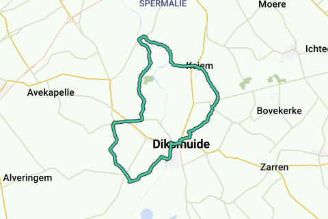 På den gamle digebro tager vi Cayennestraat til højre. Derfra går vi via de maleriske landsbyer Oostkerke og Stuivekenskerke til Schoorbakke og Keiem, hvor ruten slutter.