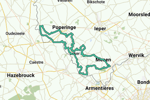 En kuperet rute gennem Heuvelland og på Schreve. Ruten starter fra Watou og løber primært langs stille veje.