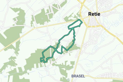 Ved den asfalterede vej St. Pietersstraat drej til venstre mod Retie landsby