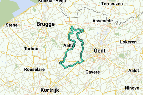 Leiestreek - Het Leen i Eeklo - De Kampel, 28m høj bakke i landskabet ved Maldegem-Kleit - Het Drongengoed Ursel - Briek Schotte i Kanegem - Poelberg, 45m høj bakke Tielt - Via Gottem og Deinze tilbage til Leiestreek.