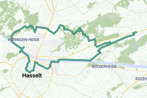 Fra den gratis parkeringsplads 🅿 cykler vi gennem et smukt nabolag til Genk. Her gennem en dejlig bypark og langs Albertkanalen til Hommelheide, Domijn Kiewit og Weijers ved Bokrijk