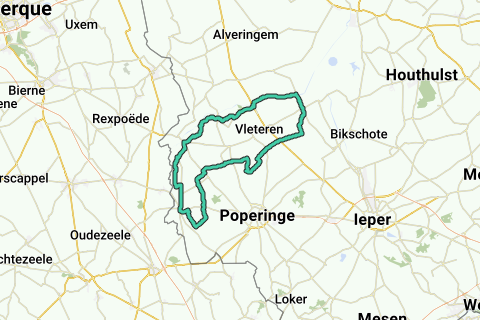 Watou: langs skreve og donin IJzer indtil Fintele og Hoppeland med deres berømte øl Van West-Vleteren og Sint-Bernardus.