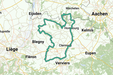 Rundtur Voerstreek 21 fra Slenaken. Start/slut: stor parkeringsplads ved foden af Loorberg Slenaken. Stigninger: Grensweg Slenaken 400 m., max. 10.0%. Rozengaerden Remersdaal (B) 1.000 m., max. 12.0%. Clos du Grand Sart Mortoux (B) 1.700 m., max. 10.0%. Côte de Bouxhmont Battice (B) 2.200 m., max. 10.0%. Côte de Andrimont Andrimont (B) 2.000 m., max. 11,0%. Rue de la Station Hombourgh (B) 700 m., max. 15.0%. Rue de Beusdael (delvist) Sippenaeken (B) 1.000 m., max. 6.0%. Eperheide Epen 1.400 m., max. 8.0%. I ruten er der også flere navnløse bakker. Højdetræning: 1.099. Kaffe-stop: Au Point Chaud, Rue de la Clef 74, Hervé (B) (åben dagligt).