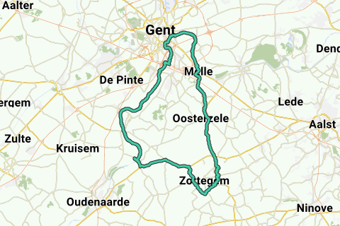 Du cykler langs Schelde fra Zingem til Zwijnaarde for - via Ghelamco Arena og havnen i Merelbeke - at igen tage fat ved Schelde fra Gentbrugge til Melle.
