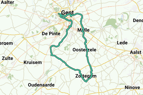 I Gavere cykler du langs Schelde til Zwijnaarde og fortsætter derefter fra knudepunkt 3 via 42 og 52 mod knudepunkt 68. Blaarmeersen ligger mellem de sidstnævnte knudepunkter. Blaarmeersen tilbyder mange cykel- og vandremuligheder inden for området. Et besøg på "Vlaams Wielercentrum Eddy Merckx" er en anbefaling, og med en passende timing kan du (gratis og komfortabelt) deltage i en træning af en eller flere af vores mest kendte banecykelryttere. På vej tilbage cykler du via knudepunkterne 52, 4 og 5 tilbage til Schelde, som du følger hele vejen til Melle.