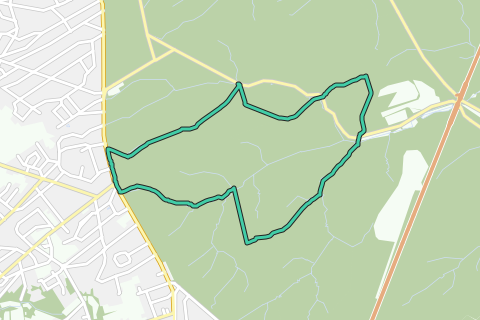 Denne gåtur er ikke markeret på jorden, venligst brug appen, der viser de virtuelle vejpunkter, eller følg de træpæle med en blå stribe. Foreslået rute på Zoniënwouds virtuelle vandrerutenetværk.