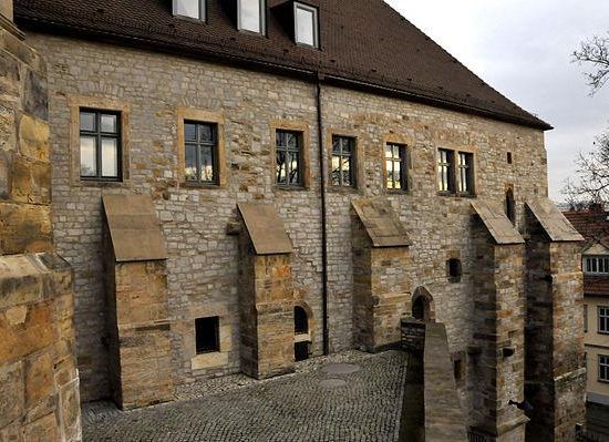 Erfurt var allerede i det thüringske og franske rige et vigtigt magtcenter. Pave Gregor II. havde i 724 opfordret thüringerne til at bygge et "hus" til den her missionerende Bonifatius. Angiveligt blev denne opfordring allerede imødekommet i 725. I 741/42 bad Bonifatius pave Zacharias om at bekræfte oprettelsen af et bispedømme "på det sted, der hedder Erphesfurt, som i lang tid havde været en bosættelse eller borg for hedenske bønder". Samtidig blev bispedømmerne Büraburg og Würzburg også oprettet. Den første omtale anses som grundlæggelsesdatoen for byen Erfurt, selvom Bonifatius jo allerede havde fundet en folkerig bosættelse, hvilket for det første var en forudsætning for oprettelsen af et bispedømme og for det andet blev resultaterne af de byarkæologiske undersøgelser tydeligt vist.