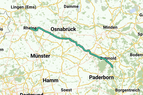 Stien, der starter ved stationen i Rheine, følger altid den højeste rute af bjergkammen. Stien slutter på toppen af den østligste bjerg af kammen, Lippischen Velmerstot (441 m) og er markeret med et hvidt H i et sort felt.