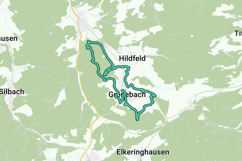 Gronebacher Dorfpfad vandring med en ekstra omvej langs Rimberg og Rimbergkreuz. Det gør vandringen 6 km længere. Gronebacher Dorfpfad selv er 11 km og er afmærket.