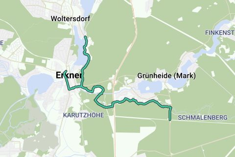 Dine senmorning højdepunkter: Kort transport med tog/S-Bahn overvejende smalle, naturbevarede stier Skovbadning ved Löcknitz, Wupatz- og Flakensee Snack-stop i Erkner eller ved Woltersdorf-slusen
