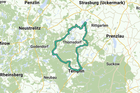 Rute: Lychen - Feldberg - Warbende - Fürstenwerder - Parmen - Boitzenburg - Warthe - Metzelthin - Templin - Alt Placht - Lychen
