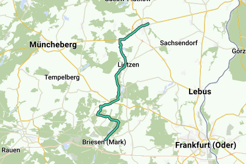 Med RE1 når man hurtigt landskabet og kommer til Briesen. På den bedste asfalt ruller man gennem den duftende skov, der hemmeligt gemmer Petersdorfer Sø. Det første stop kan være ved Gut Klostermühle. Det rummelige område af hotel- og naturresortet ved Madlitzer Sø er et harmonisk sted. Tag en pause på græsplænen og lad fødderne svæve ud over træbroen i søen.