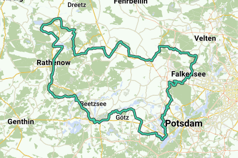 Den 250 kilometer lange cykelrute strækker sig over 4 etaper gennem det smukke Havelland - Brandenburgs frugtkammer. Forbi Havelländischen Luch, et stort grønt område med gruber og kanaler, hvis bredder er kantet med sorte elme eller popler, fortsætter ruten ind i naturparken Westhavelland og til Stölln. Der bør bestemt være tid til en pause undervejs i Ribbeck og til at besøge Lilienthal-Centret. Det går forbi vidunderlige søer, Hohennauener See, Trebelsee, Schwielowsee og Großen Zernsee. I lange stræk følger cykelstien flodløbet af Havel. På den måde når cyklisterne vuggen af marken: Brandenburg an der Havel og på næste stræk også blomsterbyen Werder an der Havel, inden cykelstien går tilbage til Dallgow-Döberitz via Marquardt og Kartzow. Længde: 250 kmStart / Mål: Dallgow-DöberitzLogo / Rute tegn: ikke tilgængeligAnkomst / Afrejse: Tog: Fra Berlin Jungfernheide med RB13 (Wustermark) til Dallgow-Döberitz (ca. 15 minutter).Bil: Fra Berlin via B2 og B5 til Dallgow-Döberitz (ca. 1 time).Forløb: Dallgow-Döberitz, Falkensee, Paaren im Glien, Nauen, Ribbeck, Paulinenaue, Rhinow, Rathenow, Premnitz, Havelsee, Brandenburg a. d. Havel, Glindow, Dallgow-DöberitzKombinationsmulighederHavelland-cykelstiHavelcykelstiTour BrandenburgVeje tilstand / Ruten forbedring: Ruten går over godt udbyggede og befæstede veje. I Ländchen Rhinow anvendes delvist befæstede landbrugsveje, og mellem Brandenburg an der Havel og Werder (Havel) anvendes delvist ubefæstede veje.Kort / Litteratur: "Potsdam - Havelland - Fläming: Cykelkort. GPS-præcist", 1:70000, KOMPASS-kort; Udgave: 3 (1. marts 2016), ISBN-13: 978-3850262729, 7,99 Euro