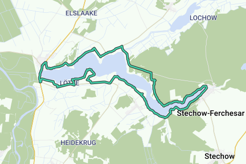 I Havelområdet nord for Rathenow indbyder rundvejen omkring "Hohennauener-Ferchesarer Sø" til en meget smuk vandretur. Søens rundvej er markeret, og langs vejen er der mange muligheder for hvile og forfriskning i landsbyerne ved søen. Længde: 23 km (5-6 timer) Start / mål: Hohennauen Logo / vejskilt: rød tværstreg på hvid baggrund Ankomst / afrejse: Offentlig transport: Fra Berlin Hauptbahnhof med Re4 til Rathenow. Herfra videre med bus 684 (Neustadt / Dosse) til Spaatz. De sidste 1,5 km til Hohennauen til fods (ca. 1 time 45 minutter). Bil: Fra Berlin via A24. Fra Fehrbellin via Friesack og Rhinow. Til sidst via B102 til Hohennauen (ca. 1,5 timer). Forløb: Hohennauen, Semlin, Ferchesar, Wassersuppe, Hohennauen Vejbeskrivelse: Den naturskønne vandretur begynder ved den vestlige bred af søen i landsbyen Hohennauen. Man vandrer forbi den barokke landsbykirke i retning mod Rathenow og krydser Hohennauener vandvejen, der forbinder søen med Havel. Ved første lejlighed drejer man til venstre bag broen i retning mod Semlin. Gennem en lille bebyggelse kommer man tilbage til vejen mod Semlin, hvor en markvej snart svinger til venstre og fører direkte til søbredden. Langs rørskovsgulvet og forbi forskellige badepladser vender man tilbage til vejen mod Semlin. Når man når byen, drejer man til venstre og når Semliner strandpromenade. Her indbyder bænkene til en hyggelig pause med en imponerende udsigt over Hohennauener Sø. På en smuk græsvej og smalle stier, altid tæt på bredden, når man til slut Ferchesar. Den drømmende landsby bliver siden begyndelsen af det 19. århundrede ofte omtalt som perlen i Havelland. Herfra vandrer man langs nordsiden tilbage mod Hohennauen og krydser Ferchesarer Skoven. Strækningen indtil campingpladsen Buntspecht tilbagelægges igen tæt på bredden, hvorefter man går ad en højvej gennem skoven og kan nyde udsigten over søen. Når man når den brede skovhovedvej, drejer man til venstre ind på denne og når snart åbne marker. Herefter krydser man på en lille bro kanalen, der forbinder Hohennauener Sø med Witzker Sø, og når vejen til Wassersuppe. Her holder man sig til venstre og krydser landsbyen med det kuriøse navn. På markveje og videre ad højvandsbeskyttelsesdiget går det til sidst tilbage til Hohennauen. Kombinationsmuligheder Havel-Elbe-vandresti Veje / ruteopbygning: naturnære veje Kort / litteratur: "Havelland - Vandring og cykling", 1:50.000, KOMPASS-kort, Innsbruck, Udgave: Ny udgave. (Februar 2009), ISBN 978-3854915058, 9,95 Euro