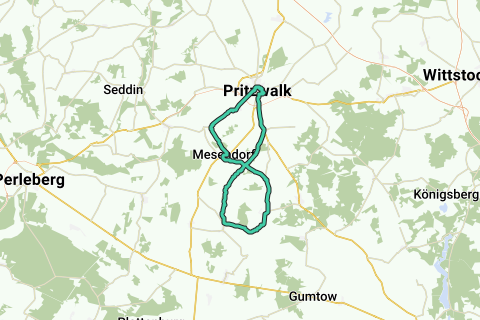 Den damper og puster på den 9 kilometer lange strækning fra Lindenberg til Mesendorf – „Pollo”, den eneste smalsporede jernbane i Brandenburg. Fra 1897 til 1971 transportede den især varer tværs gennem Prignitz. Knudepunktet var Lindenberg, som i dag rummer et lille jernbanemuseum. På nogle weekends har det åbent, så fans også kan tage med historiske damplokomotiver og dieseltog. Cykelturen fører et stykke langs Prignitzer Kleinbahn og passerer mange andre oplevelsessteder, især for familier med børn. Længde: 38 kmStart/Mål: Pritzwalk StationRute: Pritzwalk, Buchholz, Groß Woltersdorf, Lindenberg, Kehrberg, Klein Woltersdorf,Markering / Logo: ingenAn- og Abrejse: Tog: fra Berlin med EC til Wittenberge, videre med RE6 (Berlin-Spandau) til Pritzwalk (ca. 2t)Bil: fra Berlin over A24 til Pritzwalk (ca. 2t)Seværdigheder og nyttige oplysninger: Jernbanelinie, museumsbane og Kleinbahnmuseum LindenbergSommerrodelbahn Groß WoltersdorfBadesee Groß WoltersdorfWaldlehrpark Groß Woltersdorfåben kirke Kehrberg med udstilling om „Kehrberger Wunderknaben”Kombinationsmuligheder / tilslutning til andre cykelruter: Rute til cykelknudepunkter 82-64-63-67-66-64-65-81-80-82BishopstourElbe-Müritz-rundturTour BrandenburgVejens tilstand/Ruteudvikling: asfalteret, vejbrug (bilfri til lav trafik) og vejledende cykelstierKort / Litteratur: "Bikeline Radkarte Prignitz (BRA01)", 1 : 75 000, Forlag: Esterbauer; Udgave: 3. (1. juli 2014), ISBN-10: 3850003914, 6,90€