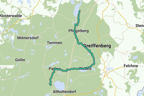 Forløb: Joachimsthal, Parlow, Glambeck, Wolletz, Görlsdorf, Peetzig, Steinhöfel, Stegelitz, Warnitz