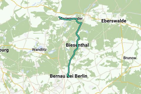 Denne cykeltur tilbyder også mindre trænede cyklister en aktiv naturoplevelse. Fra Bernau går det langs bymuren, som blev opført allerede i det 13./14. århundrede. På ruten ligger bunkeren i Ladeburg samt landsbyen Lobetal. Ruten fører videre gennem naturreservatet "Biesenthaler Becken". Når man passerer Langerönner Mühle, opdager man forvandlingen af denne istids-gletscherbassin til naturreservat. Sandhøje, der kaldes kames, og moser veksler i "Biesenthaler Becken". Med lidt held kan man høre kaldet fra en trane eller isfugl. I Biesenthal oplever man en vidunderlig udsigt fra Kaiser-Friedrich-udsigttårnet. En forfriskning tilbyder et ophold ved det nærliggende strandbad Wukensee. Det er en fornøjelse at cykle gennem naturparken Barnim. Et højdepunkt på denne tur er strækningen lige ved Finowkanal. Længde: 30 km Start: Bernau Mål: Zerpenschleuse Logo / rutenummer: ingen oplysninger Ankomst: Fra Berlin Hovedbanegård med RE3 (Stralsund) til Bernau (ca. 20 minutter). Afrejse: Fra Ruhlsdorf-Zerpenschleuse med RB27 til Karow. Herfra videre med S2 (Blankenfelde) til Berlin Friedrichstraße (ca. 1 time). Rute: Bernau, Ladeburg, Lobetal, Biesenthal, Marienwerder, Zerpenschleuse Seværdigheder / Vidensværd: Bernau: Voldanlæg, Heimatmuseum i Henkerhaus, Steintor Ladeburg: Bunker Biesenthal: Galleri i rådhuset Kombinationsmuligheder Lille Bernauer familietur Store Bernauer familietur Cykelsti Berlin-Usedom-Wollin-Stettin Skove, vand og en kæmpe elevator Oder-Havel-cykelsti Vejbetingelser / Strækningens udbygning: ingen oplysninger Kort / Litteratur: "Barnimer Feldmark og naturpark Barnim: Topografisk fritidskort", 1:30000, Landmåling og geobasisinformation Brandenburg (1. januar 2012), ISBN-13: 978-3749041572, 6,- Euro "Schorfheide - Uckermark - Barnim: Vandrekort med Aktivitetsguide og cykelstier", 1:50.000, KOMPASS-kort, Udgave: 2 (1. februar 2015), ISBN-13: 978-3850265393, 9,95 Euro