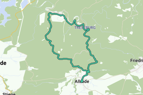 I denne rundvandring, der starter i Allrode, lærer du tre sidekløfter af Bodetal at kende. Derudover fører stien dig forbi Jagdschloss Windenhütte og passerer de to steder Altenbrak og Treseburg, som ligger i Bodetal.