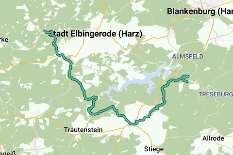 Den sydlige etape fører over Rappbode-forbarren og langs Hassel-forbarren til højlandet i Mittelharz med den smukke kurby Hasselfelde. Vejen fører os videre til Köhlerpfad, som vi følger, draget af den krydrede duft fra kulmeilerne, indtil vi når Köhlereimuseum. Fra Altenbrak er der nu kun et lille hop tilbage.