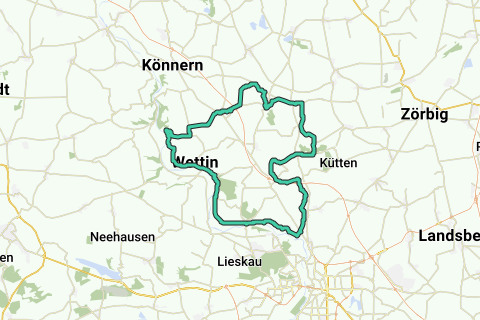 Ved færgelejet møder vejen cykelstien, der kommer fra Halle. Følg denne mod nord gennem dele af naturparken Underes Saaledal med sine porfyrlandskaber. Forbi det unikke tempelkapel i Mücheln kommer du igen tilbage til udgangspunktet Wettin.