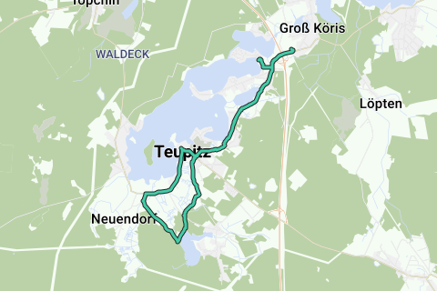 Cykelturen Minibadeshorts til Tornower Sø har form som en ballon. Ruten fra stationen i Groß Köris til Teupitz tilbagelægges frem og tilbage ad den samme cykelsti. Den cirka 4 km lange rute langs Teupitzer Sø kan gøres mere interessant med afstikkere til halvøen Schweriner Horst og badeområderne ved Schweriner Sø. Der er også bademuligheder ved Teupitzer Sø.