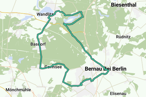 En hyggelig tur i den nordlige del af Berlin, som også er nem at køre med familien. Ved Liepnitzsøen og ved Wandlitzsøen frister et hop i vandet. Turen kan godt forkortes med halvdelen i Wandlitz. Længde: 46 km Start / mål: Bernau station nær Berlin Logo / rutevejviser: Stien er kun delvist skiltet, men fører delvist over cykelstien Berlin-Usedom-Stettin. Ankomst / afgang: Tog: Fra Berlin Hauptbahnhof med RE3 (Stralsund) til Bernau (ca. 20 minutter). Bil: Fra Berlin over A10 og A11 til Bernau (ca. 30 minutter). Forløb: Bernau, Wandlitz, Basdorf, Panketal, Bernau Kombinationsmuligheder Berlin-Usedom cykelrute Vejforhold / ruteudvikling: Ruten er godt anlagt, fører over veje med asfaltbelægning, men også delvist over skovveje. Kort / litteratur: "Barnimer Feldmark og Naturpark Barnim: Topografisk fritidskort", 1:30000, Landsmåling og Geobasisinformation Brandenburg (1. januar 2012), ISBN-13: 978-3749041572, 6,- Euro