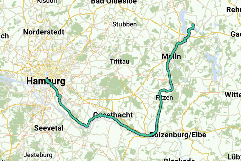 Hamburg, Nordtysklands største metropol, er udgangspunktet for den cirka 500 km lange cykeltur til Rügen. Efter starten cykler I langs Elbe-kysten til Geesthacht i hertugdømmet Lauenburg. Derfra går det gennem byerne Lauenburg, Büchen og Mölln til Ratzeburg. Derefter krydser I grænsen til Mecklenburg-Vorpommern og cykler over Schwerin, Güstrow, Teterow, Demmin og Stralsund til Rügen.