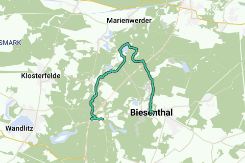 Rutevejledning: Turen fører fra Lanke forbi Obersee til Pegnitzfließ. Derefter fortsætter det til Strehlesee. Lidt efter Prenden nås Bauersee og Mittelprendener See. Bag Sophienstädt følger Eiserbuder See. Bukowsee følger derefter som det næste. Efter rastepladsen Pöhlitzbrück er der ikke langt til Biesenthal. Ved Wehrmühle fortsætter det forbi Kaiser-Friedrich-Turm. Målet for turen er torvet i Biesenthal.