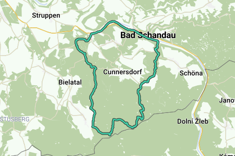 Vores tur begynder ved S-Bahn-stationen i Bad Schandau. På den første strækning cykler vi ned ad Elberadstien mod Königstein. Ved rundkørslen i Königstein kører vi mod Pfaffendorf og cykler nu et par meter langs Biela, der løber ud i Elben i Königstein. Efter ca. 100 m holder vi til venstre og følger vejen, som nu fører os stejl opad. Snart støder vi på Pfaffendorfer Straße, som vi fortsætter op ad. Efter omtrent 100 m drejer en vandresti til højre mod Tafelberget Quirl. Vi følger stien langs skovkanten, der næsten stejl fører os op til højdedraget af Quirl. Derefter går det et stykke nedad i et roligt tempo. Snart møder vi Kirchleitenweg, hvor vi drejer til venstre. Denne følger vi gennem skoven, indtil vi når statsvejen mod Cunnersdorf. Der drejer vi til højre, passerer en skov parkeringsplads til venstre for os og støder kort efter til venstre på Ladewegbrücke, som vi krydser. Herfra følger vi vandrestien med det hvid-grøn-hvide symbol og skal igen træde hårdt i pedalerne.