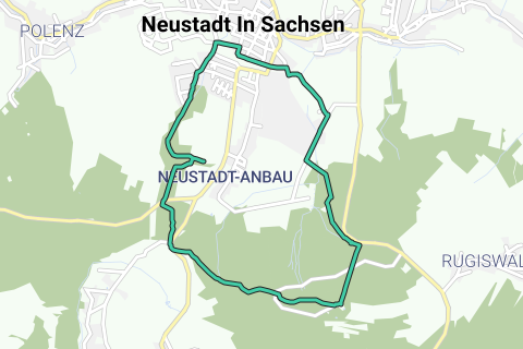 Banegård Neustadt - Doktor-Otto-Nuschke-Vej - Friedenseck - Freibadesee - Kirschallee - Tännigtvej - Ungerberg - Kammvej - Naturhistorisk sti - Götzinger Høj - Promenadesti - Banegård Neustadt