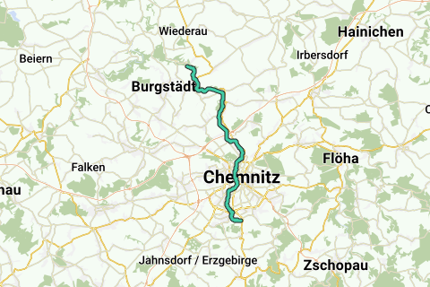 i Chemnitz: Sächsische Städteroute (Crimmitschau-Görlitz); Sächsisch-Bayerisches Städtenetz: Zwickau - Chemnitz 4/4 i Burgstädt: Bilz-cykelrute