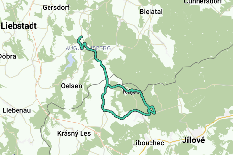 Ved Goethepark i Bad Gottleuba går det i gang. Man drejer til venstre ind på Hellensdorfer Straße og derefter til venstre af Kurvenstraße mod S173 til Hellendorf. Herefter fortsætter man over grænsen. Bag tankstationen til venstre tager man den markerede cykelsti 3017. Den fører til Rájec. I byen holder man sig på cykelsti 3017 mod Tisá, indtil man møder cykelruten 23 „Krušnohorská magistrála“ (Erzgebirgsmagistrale). Ved Tisá rejser op til 70 m høje klippevægge sig - et paradis for naturforskere, klatrere og turister. Denne unikke klippeformation betragtes som en sjældenhed og kaldes også klippestaden. Området kan dog kun udforskes uden cykel. Tilbagevejen til Bad Gottleuba foregår ad cykelrute 23 til Petrovice, via Hellendorf og Kurvenstraße.