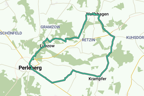 gennem: Perleberg - Burghagen - Krampfer - Groß Pankow - Wolfshagen - Seddin - Kreuzburg - Perleberg (Hagen)