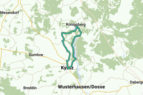 via: Kyritz - Stolpe - Bork - Lellichow - Königsberg - Rosenwinkel - Wutike - Rüdow - Kyritz