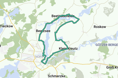Fra en by fyldt med historie, seværdigheder og attraktioner til en stille og rig natur er det kun et kort stykke for cyklister med startpunkt i Brandenburg an der Havel. Storkeruten gør det muligt. Længde: 37 km Start / Destination: Brandenburg a.d. Havel Logo / Rutevejviser: Stork på blå, hvid og rød baggrund Ankomst / Afrejse: Tog: Fra Berlin Zoologischer Garten med R1 (Magdeburg) til Brandenburg a.d. Havel (ca. 45 minutter). Bil: Fra Berlin via A10, A2 og B102 til Brandenburg a.d. Havel (ca. 1 time). Rute: Brandenburg a.d. Havel, Klein Kreutz, Mötzow, Ketzür, Butzow, Radewege, Brandenburg a.d. Havel Rutevejledning Den begynder midt i byens centrum ved Neustädtischen Markt og bringer udflugterne allerede efter kort tid til Mötzow, hvor Domstiftsgodset indbyder til pause og til at undre sig over (N)ostalgie og kunst. Kort efter præger Beetzsee landskabet. Det langstrakte Havel-vand giver de bedste forhold især for storken, der er navngiver for turen. Der er dog ikke kun mange reden at opdage. Livlig fuglesang vidner om, at mange andre dyr også trives her. Bæveren holder sig som regel skjult i løbet af dagen, men mindst bidmærkerne beviser dens stærke udbredelse. Efter Bollmannsruh er det ikke kun på grund af den smukke natur værd at tage en afstikker fra den egentlige tur. Her lever historien om Fritze Bollmann videre, der ifølge en vise skulle have moret sig pragtfuldt, mens han fiskede i Beetzsee. Særegenheder / Viden: Brandenburg a.d. Havel: Dom St. Peter og Paul, St. Katharinenkirche, Altstädtisches Rathaus med Roland, St. Gotthardt Kirche, Marienbad, Computermuseum, Slawendorf, Heimatstube - Bund der Vertriebenen, Sporvognsmuseum, Dommuseum, Strand ved Grillendamm, Byhistorisk museum i Steinortturm, Roland ved Altstädtisches Markt, Altstädtisches Rathaus, Humboldthain, bymuseum i Frey-Haus, St. Annenkirche, Neustädtischer Markt, Arkæologisk Landsmuseum Domstiftsgodset Mützow med n'Østalgimuseum Ketzür: Bockvindmølle Naturmindesmærke Svenskelind Brielow Kombinationsmuligheder Havel-ruten Tour Brandenburg Vejens tilstand / Ruteudvikling: ingen oplysninger Kort / Litteratur: "Naturpark Westhavelland Süd: Topografisk fritidskort", 1:50.000, Landesvermessung und Geobasisinformation Brandenburg, Udgave: Nyudgave. (1. november 2012), ISBN-13: 978-3749040803, 6,- Euro "Potsdam - Havelland - Fläming: Cykelkort", 1:70000, KOMPASS-kort; Udgave: 3 (1. marts 2016), ISBN-13: 978-3850262729, 7,99 Euro "ADFC-regionskort Potsdam Havelland med forslag til dagsudflugter", 1:75.000, Bielefelder Verlag, Udgave: 6 (1. marts 2014), ISBN-13: 978-3870735784, 7,95 Euro