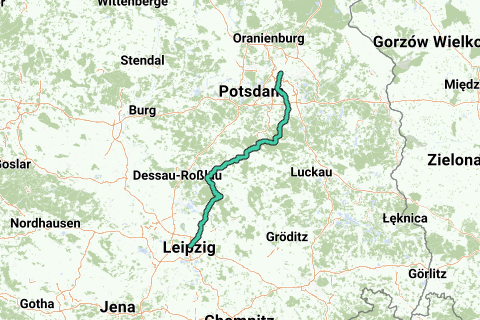 Rutevejledning: Berlin - Zossen - Jüterbog - Lutherstadt Wittenberg - Bad Düben - Leipzig