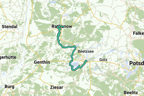 Rute: Brandenburg / Havel, Plaue, Briest, Tieckow, Havelsee, Bahnitz, Jerchel, Milow, Bützer, Böhne, Rathenow