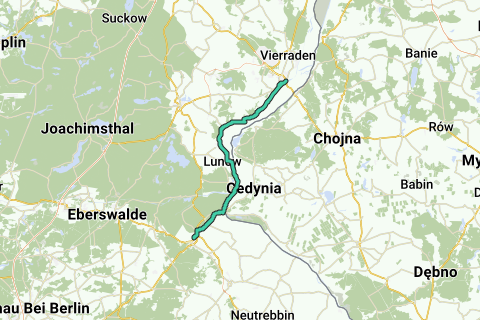 Forløb: Bad Freienwalde, Schiffmühle, Altglietzen, Neuglietzen, Hohenwutzen, Hohensaaten, Stolpe, Stützkow, Criewen, Zützen, Schwedt
