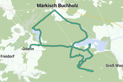 Denne rute fører langs de delvist drømmende søer beliggende i skoven og kan begejstre vandreren med sin romantik. Langs Dahme-Umflutkanal går det først til den smukke badestilling ved Köthener See. Den søkæde, der ligger syd for den, kan beundres fra udsigtstårnet på Wehlaberg. Over Oderiner See går det tilbage.Længde: 29 km (7 t)Start / Mål: Station Oderin eller busstation Märkisch Buchholz, MarkLogo / rutevejledning: grøn og blå punkt samt blå stregAnkomst / Afgang: Tog: Fra Berlin Ostkreuz med RB24 (Senftenberg) til Oderin (ca. 45 minutter).Bil: Fra Berlin via A13 til Oderin (ca. 1 t).Forløb: Oderin, Märkisch Bucholz, Köthen, udsigtstårn på Wehlaberg, OderinRutevejledning: Ved den drømmeagtige Köthener See er der et af de smukkeste badestrande i hele Brandenburg. På vandreturen til Märkisch Buchholz langs Dahme-Umflutkanal kan man finde Brandenburgs eneste vandfald: en kunstigt anlagt dæmning. På denne tur vandrer man også lange skovstræk, hvor man kan nyde ensomhed og afsondrethed i naturen. I løbet af ruten kan Wehlabergtårnet bestiges.Kombinationsmuligheder66-Søen VandreruteVandrerute Köthener HeideseenVejbeskrivelse / ruteudvikling: ingen oplysningerKort / Litteratur: "Vandringer gennem Brandenburg", Trescher Forlag. Forfatter: M. Reschke,, Udgave: 3. udgave 2013, ISBN: 978-3-89794-239-4, 14,95 Euro"Topografisk Fritidskort - Vandring, Cykling - Dahme Søområde", 1:25.000, Forlag: Landmåling og Geobasisinformation Brandenburg, 1. juli 2010, ISBN: 978-3-7490-4078-0, 6,00 Euro"Store Cykelvandringer og Vandrekort Naturpark Dahme-Heideseen: Udflugter mellem Märkisch Buchholz, Teupitz, Königs Wusterhausen og Storkow (Mark)", 1:35.000, Forlag: Barthel, A, Udgave: 3 (1. juni 2015), ISBN-13: 978-3895910920, 5,90 Euro"Cykelvandringer og Vandrekort Flutgrabenaue, Königs Wusterhausen og omegn: Udflugter mellem Zossen, Prieros, Gosen-Neu Zittau, Groß Köris og Mittenwalde", 1:35.000, Forlag: Barthel, A; Udgave: 2 (1. august 2009), ISBN-13: 978-3895910975, 4,90 Euro