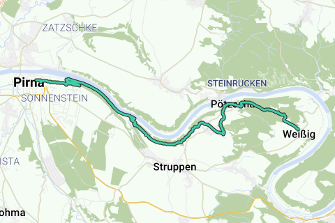 Weißig - Rauenstein - Rauenstein Gratweg - Wehlen-Pötzscha - Naundorf - Robert-Sterl-Haus - tidligere stenbrud (Alternativ: Panormaweg) - Königsnase - Obervogelgesang - Elberadvej - Pirna - Canalettoweg - Markt Pirna - Canalettohus