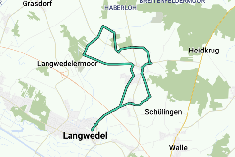 Du kører fra Langwedel station mod Dahlbrügge. Lige før byen drejer du til venstre mod Völkersen, der ved byens udkant drejer du venstre langs "Lustigen Strump". Du krydser en lille afløbsgrøft, Langwedeler Mühlenbach; den bliver senere til Goldbach og dermed navngiver vores rasteplads ved motorvejen. Stien drejer til højre, og her ligger Langwedeler Moor til venstre, som viser sig i sin naturlige form. Du krydser Ottersberger Straße, drejer to gange til højre.