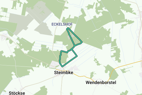 Langs skovkanten går du nu tilbage mod Steimbke, krydser „Wiehbuschwiesen", kan se hvordan køerne græsser på marken og bliver malket, drejer derefter til venstre og vandrer mellem enge til det næste kryds, hvor du drejer til højre. Bygningerne til venstre tilhører Steimbkes renseanlæg. Se op, for måske kan du se storken i sit specielt byggede rede. Den trives i de fugtige enge, ligesom mange andre engfugle, der delvist er beskyttede. Bemærk venligst i naturbeskyttelsesområderne, at du ikke må forlade de eksisterende stier for at beskytte dyre- og planteverdenen! Langs det nye boligområde „Lichtenhorster Strasse" kommer du til hovedvejen, der fører til højre mod Lichtenhorst. 300 m i denne retning ligger Waldbad, hvor du begyndte din vandretur.