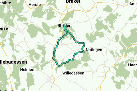 Ved begyndelsen ved kirken i Rheder er der gratis parkeringspladser tilgængelige for dig. Alternativt kan du dreje til højre ved landsbyens ende efter bryggeriet og parkere gratis ved piletræspavillonen. Du følger hovedvejen mod Siddessen indtil udkanten af landsbyen. Følg venstre om vandrestien mod Hampenhausen gennem bebyggelsen og dernæst ind i skoven. Under opstigningen passerer du fiskedammen i Himmelreich og kort før landsbyen ved "Hummelwiese" (lille stikvej til venstre) samt ved "Oplevelsesgården Hartmann" i Hampenhausen. Vandrestien fører dig til radarstationen i udkanten af Auenhausen. Derfra krydser du landsbyen Auenhausen. Før du følger vandrestien til Frohnhausen ind i skoven, har du muligheden for at følge markvejen nedad ca. 50 m længere ved skovbrynet. Her står den såkaldte Kaiserstein. Den mindes kejsermanøvren den 9. – 12. september 1907, hvor kejser Wilhelm II personligt deltog som manøveobservatør. På den videre rute når du landsbyen Frohnhausen. På ryggen efter landsbyen har du en pragtfuld udsigt. Til venstre ad stien ligger et beskyttet rasteplads med lille kildevand dam i baggrunden, som indbyder til at tage en pause. Ved det gamle skovarbejderhus drejer du skarpt til højre på markvejen. Forbi marker og enge fører vejen ned gennem et skovstykke ind i den maleriske Nethetal. Når du forlader skoven, går du i dalen mod landsbyen Rheder. Når du ankommer til Rheder, følger du hovedvejen tilbage til bilen.