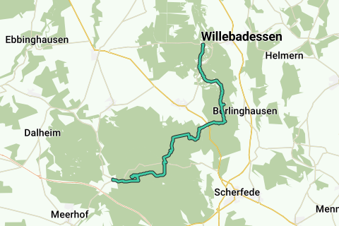 Startpunktet for denne etape er stationen Willebadessen. Herfra vandrer du ad adgangsstien mod Fernmeldetårnet op til Egge. Eggevejen fører dig over kammen til “Kleinen Herrgott” - resterne af et stenmindesmærke. Derefter går det over de stejle sandstenklipper ved Teutonia Klippen gennem en bøgeskov. Forbi klippe- og klippehavet fortsætter det op til toppen af “Nadel” - en bjerghøjde - ad en stejl sti ned til Schwarzbachtal, et europæisk beskyttet område. På den videre etape når du den middelalderlige byruin Blankenrode. I Blankenrode slutter etape 12 af vandrestien Hermannshöhen. Længde af etapen i kilometer / højdemeter / rutenatur
