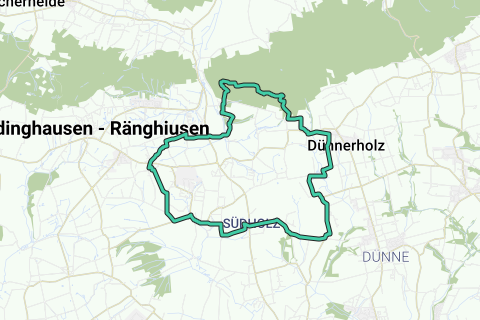 Naturturen gennem Rödinghausen starter ved borgerens solaranlæg og fører forbi dale og bække til den gamle frugttræallé ved Waghoster Straße. Med lidt held fortsætter det med frisk frugt til de smukke gamle piletræer ved Grenzbach. Vindmøller ved Hagsbrink viser vej til den største frugthave vidt og bredt. Efter et kort kig ind i Habighorster Wiesental går ruten delvist ad græsveje forbi gårde med gamle egetræer, historiske møllepladser og smukke udsigter til Wiehenbjerget. Stenbrud, fyrreskove og lavskov følger dig på denne lidt svedige strækning. Ned ad bakke går det forbi den gamle afdækning og under jernbanen. Lidt før slutningen af strækningen krydser stien bækken „Große Aue“, som tager sin vej gennem Wiehenbjerget mod nord.