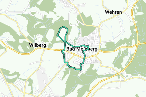 Den 5,5 km lange rute forbinder det vestlige byområde i Bad Meinberg med en tidsvurdering på 120 gåminutter. Gennem den bilfrie bymidte fører asfalterede stier mod Kreuzenstein, et lille opholdssted med en lippisk mindesten. Først lover rundvejen omkring Waldstadion igen udsigt til grønne landskaber, inden det går forbi det ældste bindingsværkshus i Bad Meinberg på Brunnenstraße, Haus Haase, tilbage til udgangspunktet Brunnentempel.