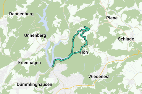 Stedet, hvor der indtil for godt hundrede år siden blev produceret trækul, ligger ligeledes ved kanten af rundvejen som et gård, hvor el, varme og varmt vand produceres i et eget blokvarmeværk. Fra et udsigtspunkt kan man se to moderne vindmøller på 140 meter ved Gummersbach-Piene, inden det går tilbage til udgangspunktet gennem dalen Rengse, som munder ud i Aggertalsperre.