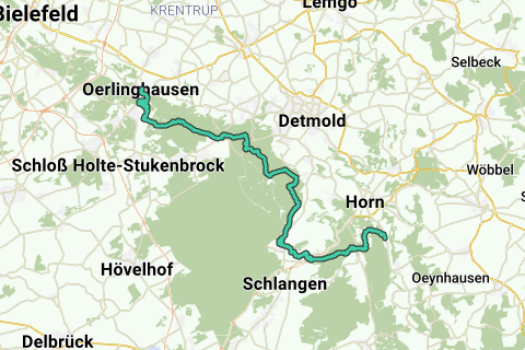 Vi stiger ned gennem en pas mellem Store Ehberg og Allhornsberg til Lopshorner Allee. Vejen fører os videre til senderen Teutoburger Wald på Bielstein, forbi Dreiflußstein (vandseparation Weser, Ems, Rhein) gennem en kastanieallé mod Hangstein. Øst for Detmold-Berlebeck vender vi os mod syd, over det næsthøjeste punkt med 412 m nord for højderne af Winnfeldet når vi Kreuzkrug i Schlangen-Oesterholz.