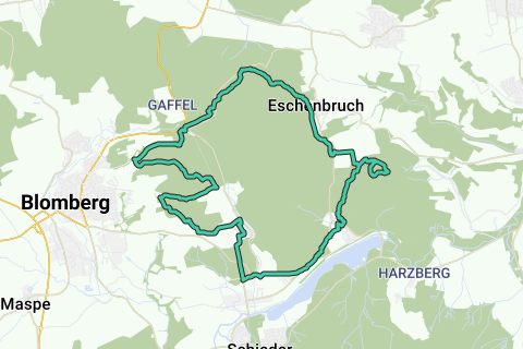 Fra Eschenbruch følger en næsten helt skovbevokset rute næsten til Blomberg. Først angiver Burgensteig fortsat retningen. Følger man dette, støder man Am Turm, der ligger ved passet af landsvejen mellem Blomberg og Eschenbruch, på resterne af en Blomberg vagtårn. Interessant på dette sted, kaldet Teufelei eller også Hölle, er de dybt indskårne hulveje i Hellweg.