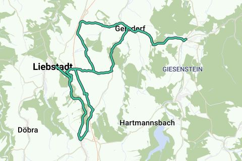 Haus der Gæster i Kurbyen Berggießhübel - Gersdorfer Straße - Gersdorf - Hauptstraße - Mod Göppersdorf - Göppersdorf - Mod Liebstadt - Göppersdorfer Straße - Liebstadt - Slot Kuckuckstein - Börnersdorf - Skilt „Alte Dresden-Teplitzer Poststraße“ - Grusvej - Postmeilensäule (Nr. 13) - tilbage til Göppersdorf - yderligere søjle - Erlichtteich - Søjle Nr. 12 - Alte Dresden-Teplitzer Poststraße - Borna - Krydsning mod Gersdorf - Berggießhübel